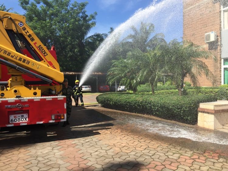 9點(diǎn)40分,金盤(pán)消防中隊(duì)2輛消防車和9名消防官兵抵達(dá)現(xiàn)場(chǎng),迅速展開(kāi)滅火和救援行動(dòng)。在消防官兵的奮勇?lián)岆U(xiǎn)下,火情迅速得到了控制,并被徹底撲滅,被困員工也被安全救出,演練就此結(jié)束。